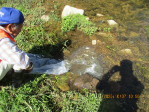 午後には甲山小学校児童の皆さんに放流を体験をしてもらいました。