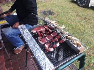 この大会は中国地区の川釣り愛好家グループが、今年度の鮎釣りシーズンの反省会も兼ねて、まつたけご飯やバーベキューを
