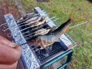 このアユは地元小学生児童の放流体験学習の一環として、学校へ塩焼きにして届け、